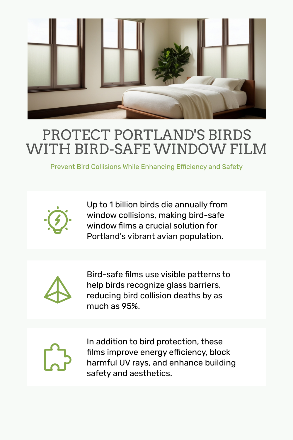 To learn more about our bird-safe window films and to see how you can contribute to bird conservation in Portland, visit our page on Bird Safe Window Film for Portland.